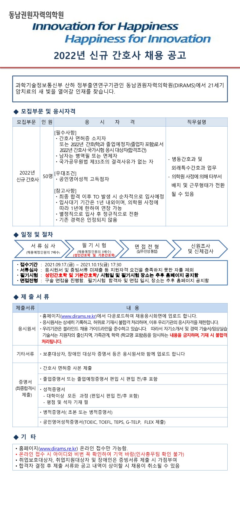 제목 [채용공고] 2022년 동남권원자력의학원 신규 간호사 채용 공고