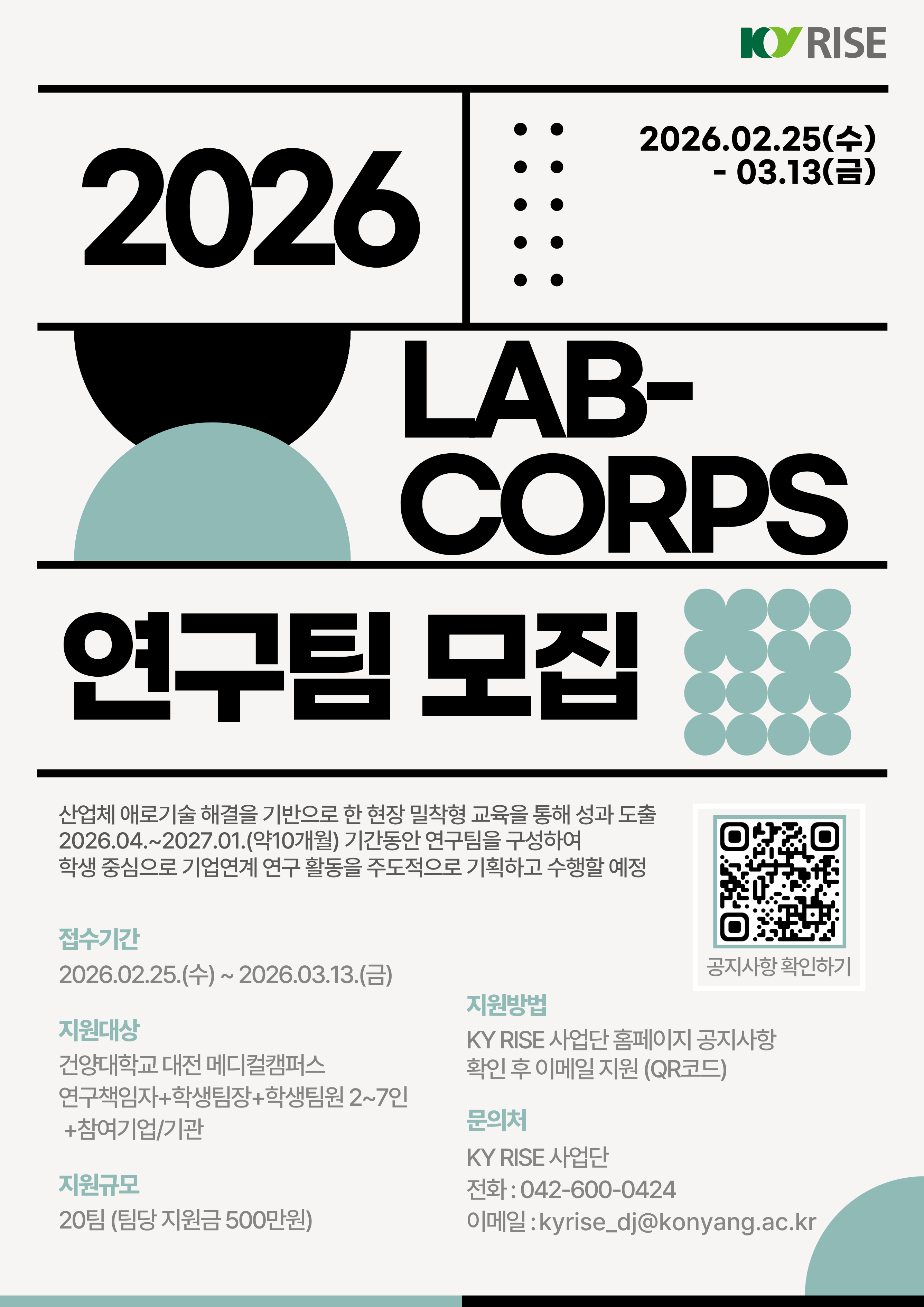 | 제목 | [KY RISE] 2026학년도 기업수요 캡스톤디자인(Lab-corps) 모집 | ||||