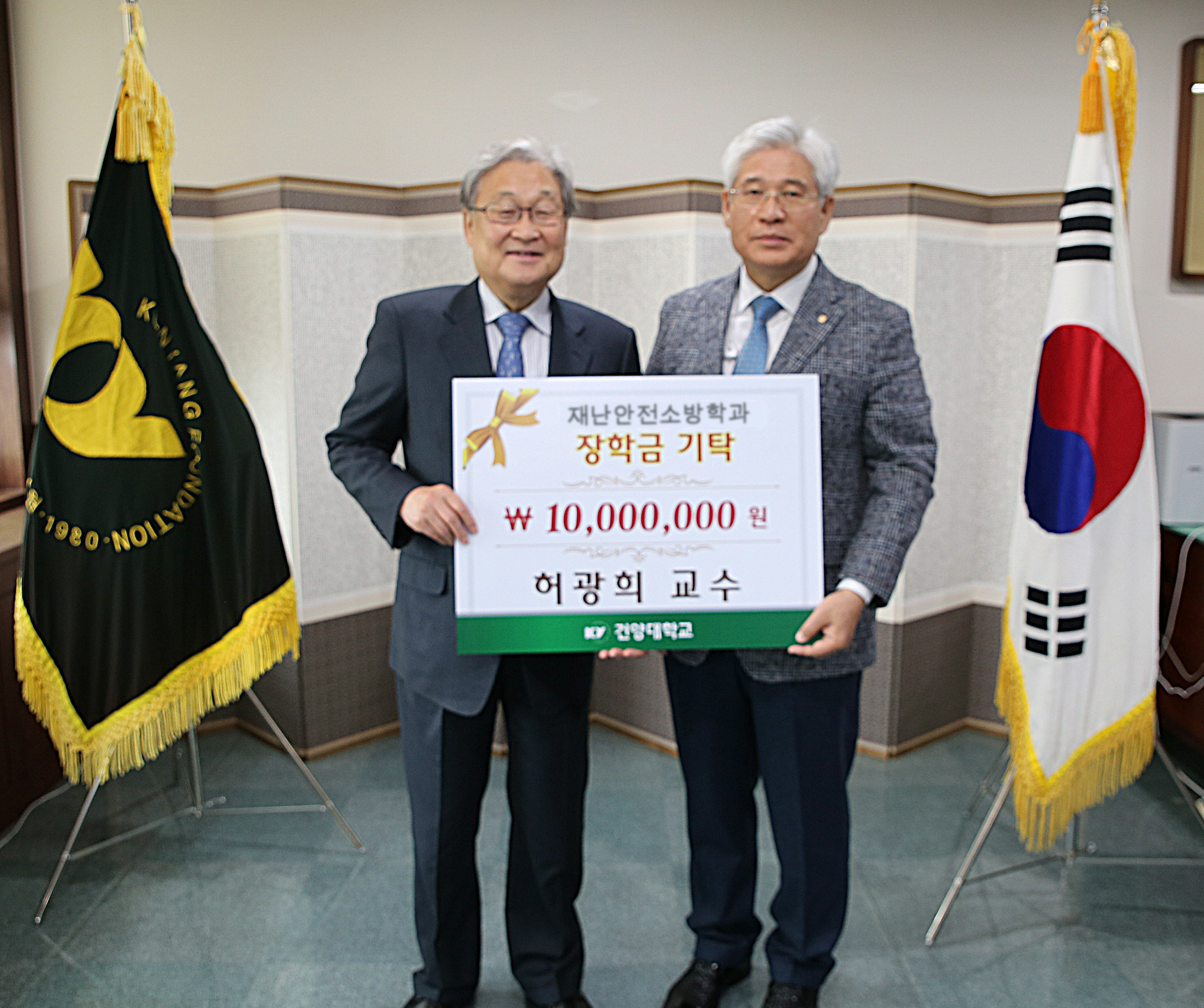 건양대학교(총장 정연주) 해외건설플랜트학과 허광희 교수가 7일 재학생들을 위해 써달라며 학교발전기금으로 천만원을 기탁했다.