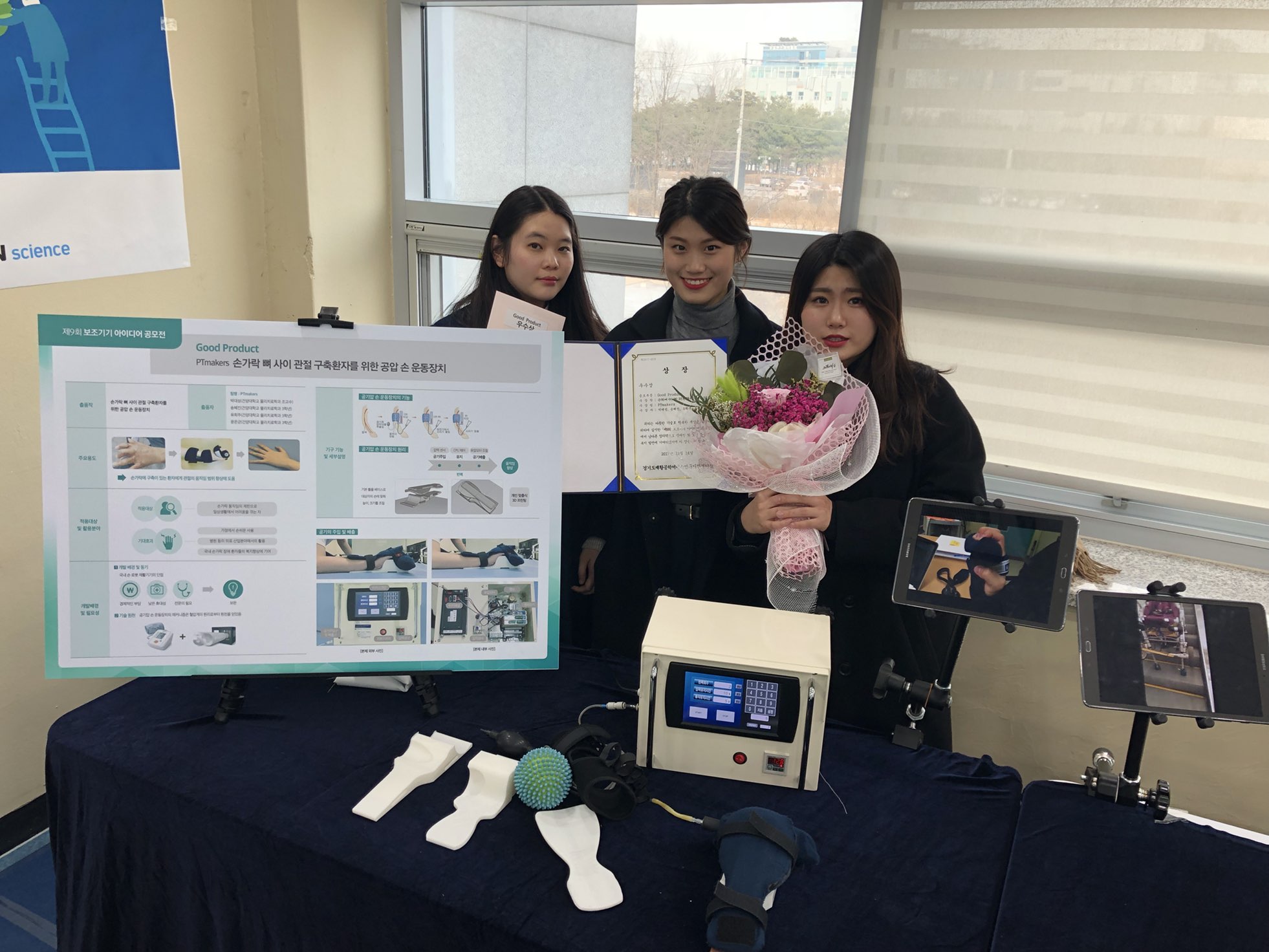보조기기 아이디어 공모전에서 우수상을 수상한 건양대 물리치료학과 학생들.jpg