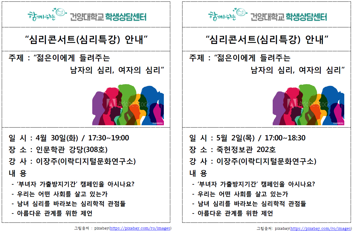 | 제목 | 심리콘서트(심리특강) 안내 | ||||