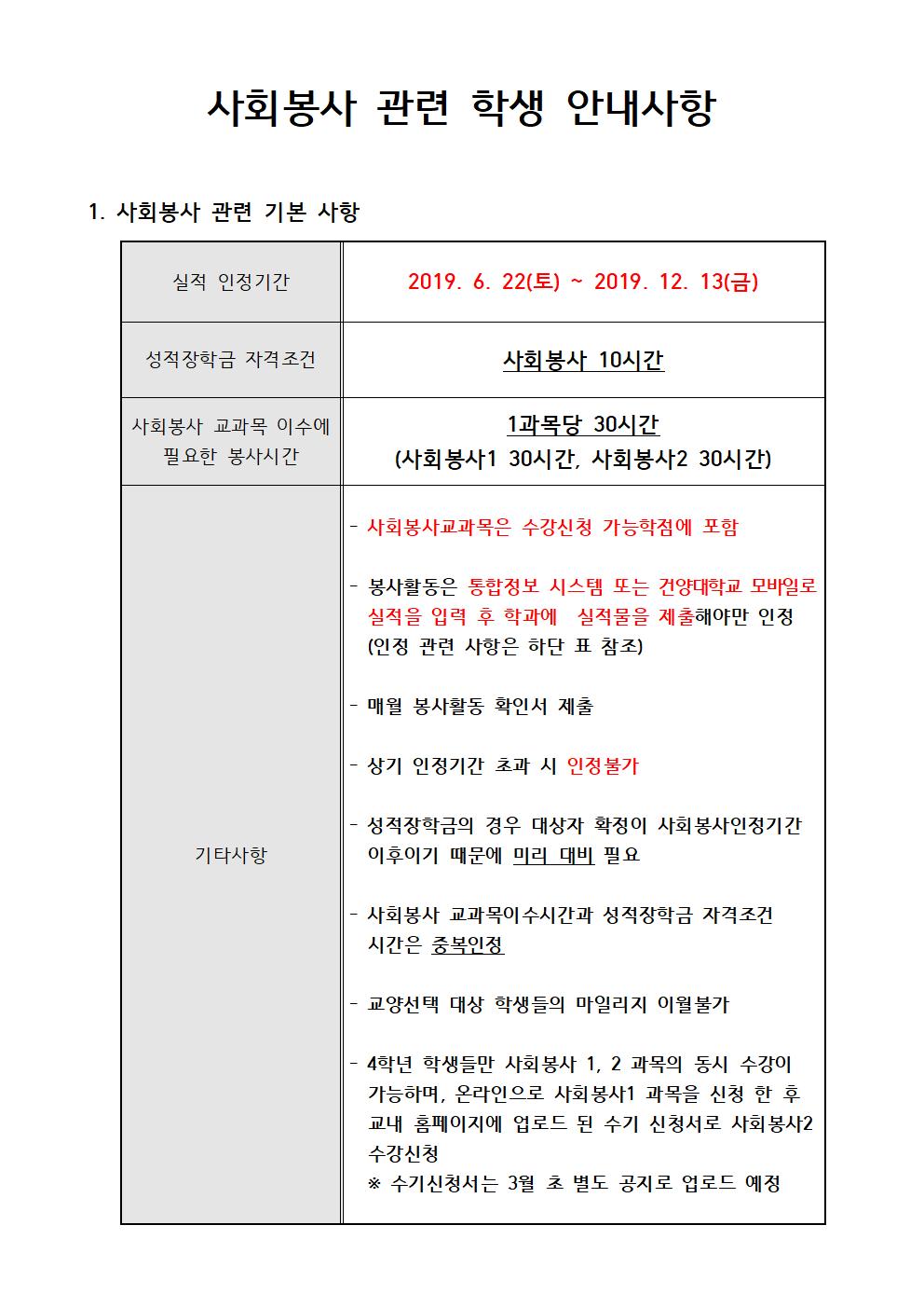 | 제목 | 2019학년도 2학기 사회봉사 활동 안내 | ||||