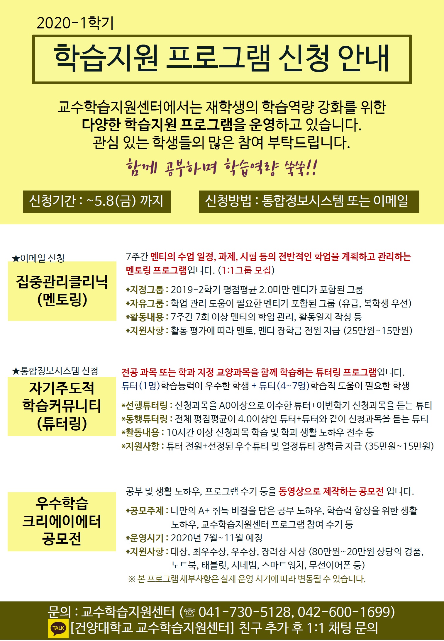 | 제목 | 2020-1학기 학습지원 프로그램 신청 안내 | ||||