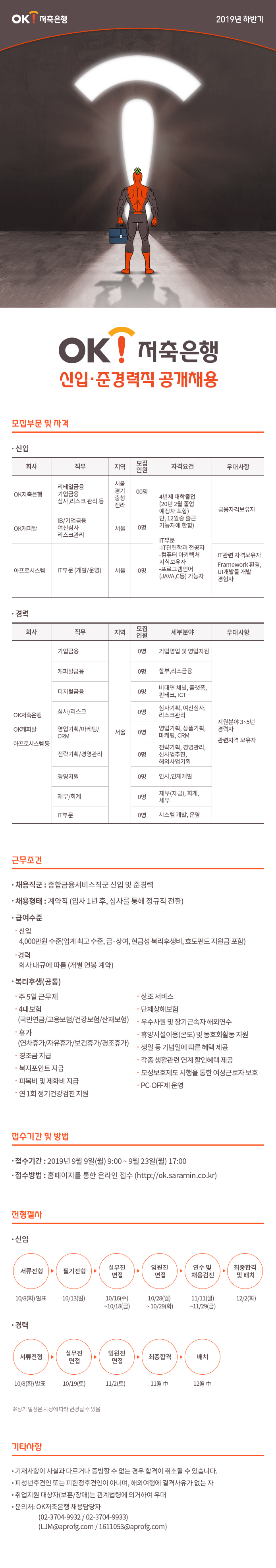 제목 [OK처축은행] 2019 하반기 공개채용 안내