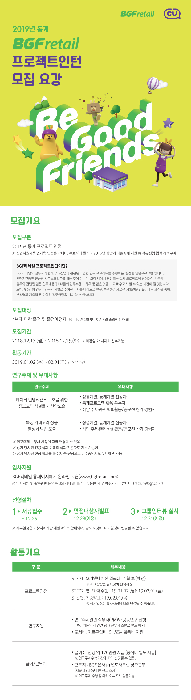 (~12/25)[BGF리테일]2019 동계 프로젝트인턴 모집요강 안내 글의 상세내용