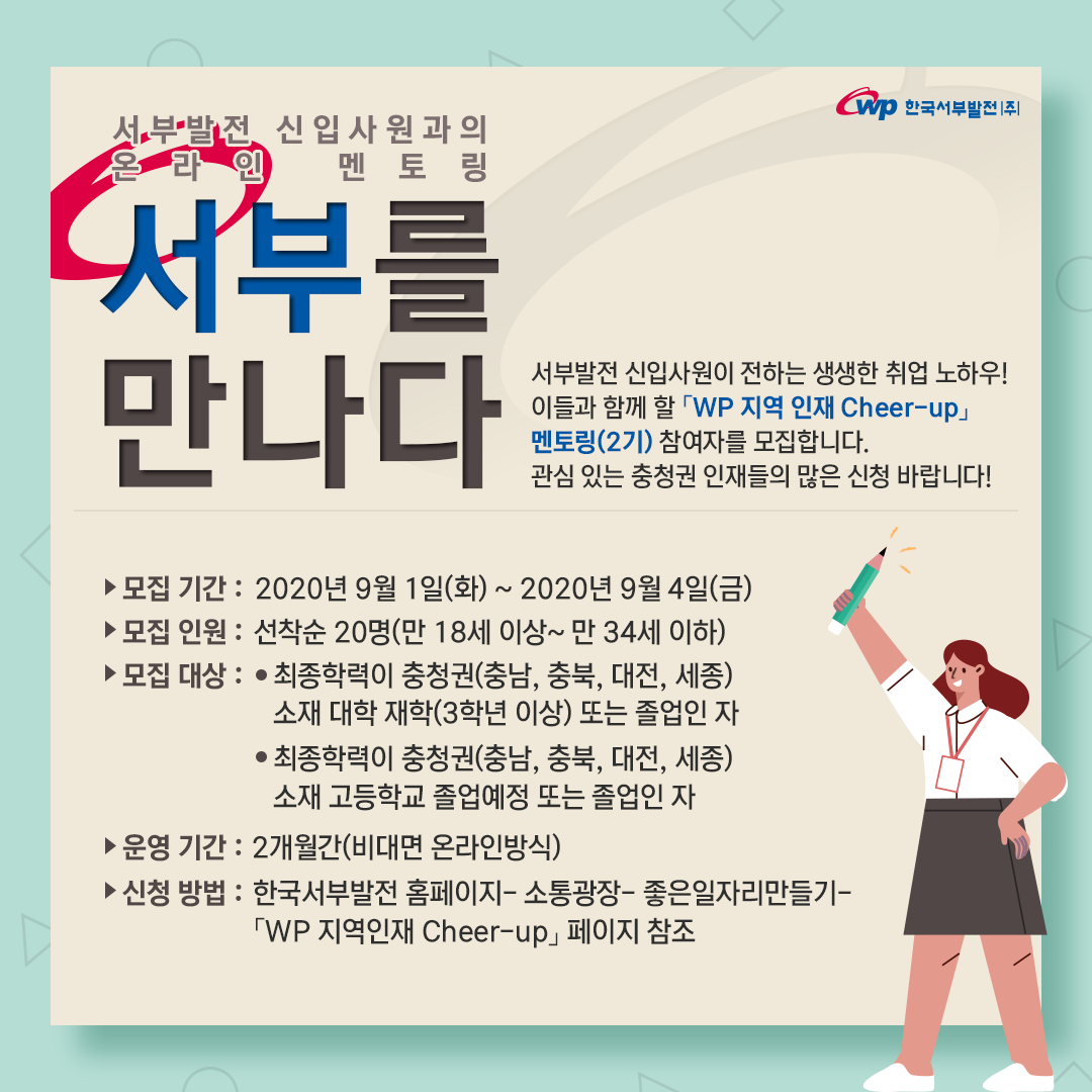 [서부발전「WP 지역인재 Cheer-up」멘토링 2기 모집]